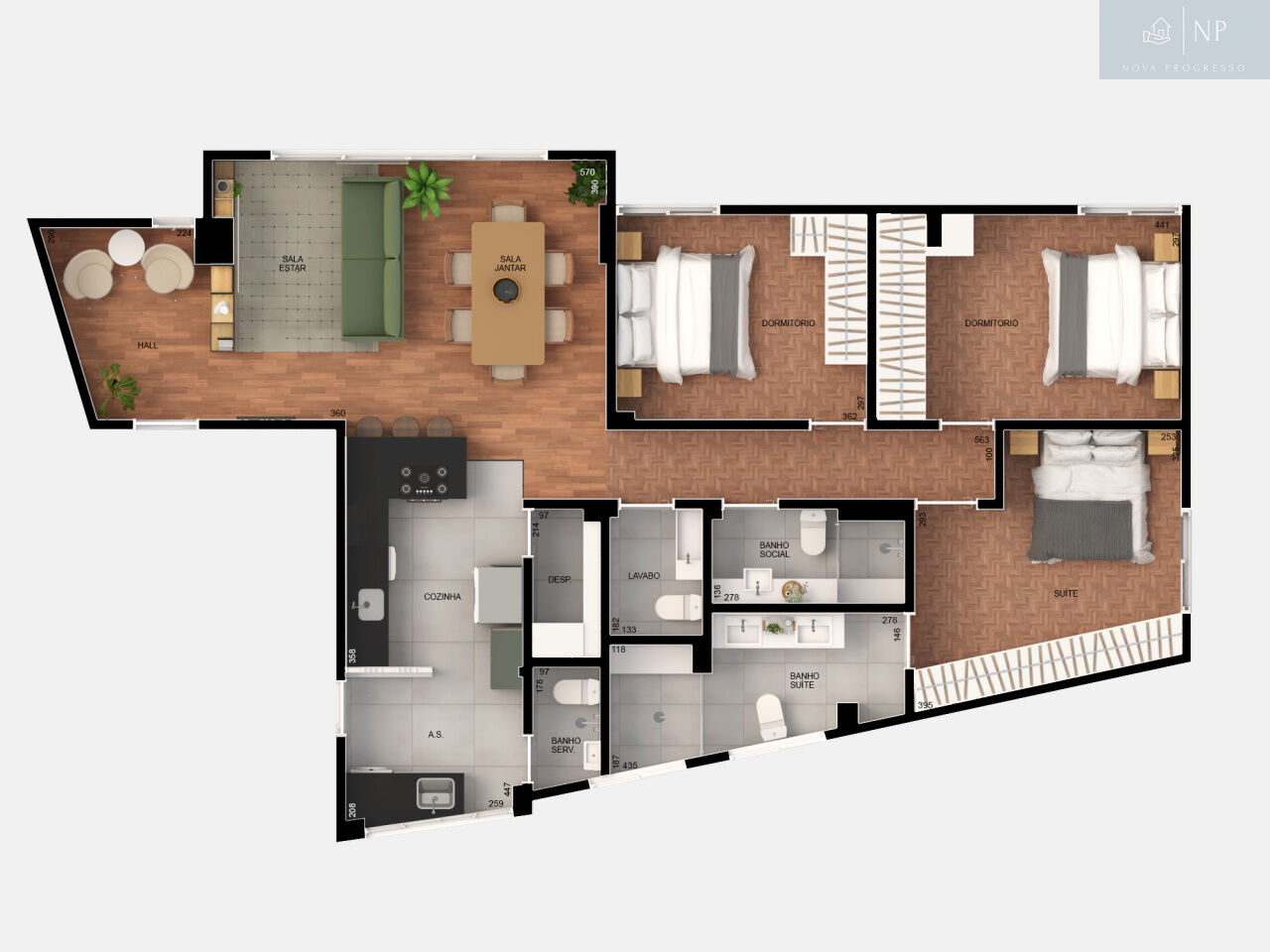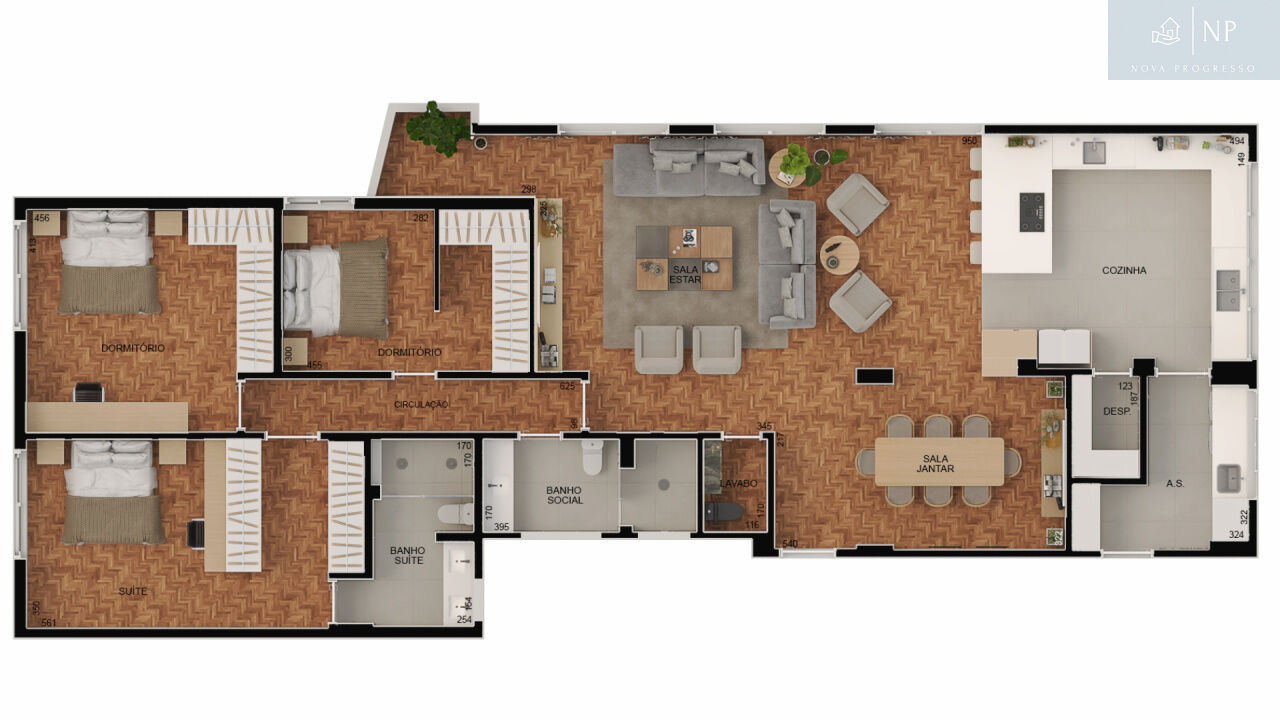 Lindo imóvel sendo 239,49 metros, sala ampla para 02 ambientes, 01 apartamento por andar, rua arborizada, linda e moderna cozinha, integrada com uma sala através de uma linda porta de correr, 03 dormitórios, sendo 01 suíte ( 1 dormitório com uma linda e aconchegante varanda